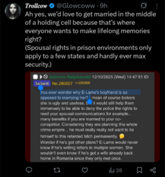 You're not getting married anywhere, he doesn't wanna marry you. Also getting married in a holding cell seems right up your alle >>/cow/280145