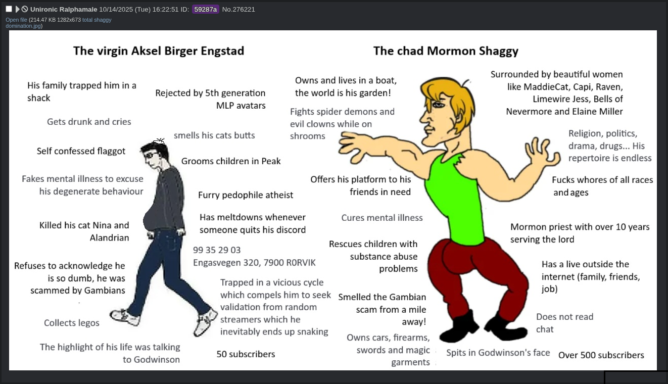 Worst of all, despite acting tough on camera, shitting on capos and claiming to cleanse the community, he was absorbed by the very blubber he wished to clean. Behind the scenes he was in contact with top Canadian Гунт capo, Perspicacity, a lispy jilted pothead and the devolution of Toad McKinley. For a man who made his career mocking Toad McKinley, his gay love was similar to Asston's for jcaesar187, degrading himself just to get a passing whiff of his starfish.