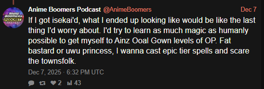 Gaytorbro update. Still waiting on truck-kun to deliver salvation through isekai.