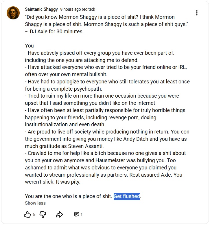 Worst of all, despite acting tough on camera, shitting on capos and claiming to cleanse the community, he was absorbed by the very blubber he wished to clean. Behind the scenes he was in contact with top Canadian Гунт capo, Perspicacity, a lispy jilted pothead and the devolution of Toad McKinley. For a man who made his career mocking Toad McKinley, his gay love was similar to Asston's for jcaesar187, degrading himself just to get a passing whiff of his starfish.